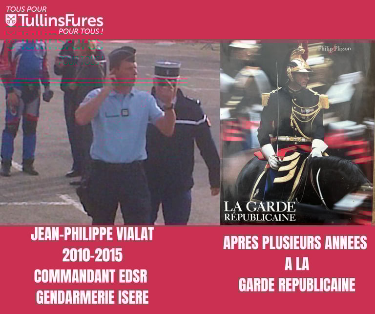 Ex officier de la garde républicaine, Ex-commandant de gendarmerie en charge pendant 5 ans de l'Escadron de Sécurité Routière de l'Isère, aujourd’hui dirigeant d’une entreprise et responsable associatif, âgé de 56 ans, père de deux enfants, ayant épousé une Tullinoise, attaché aux valeurs républicaines, investi dans le milieu associatif, je souhaite me consacrer à la gestion de cette ville que j’aime et qui a de nombreux atouts.